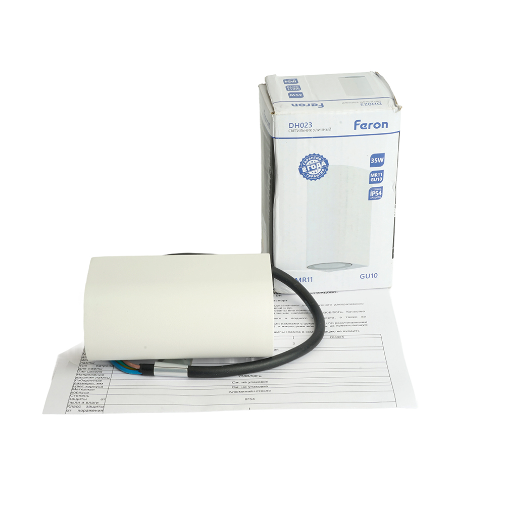 Светильник садово-парковый Feron DH023,на стену, GU10 MR11 230V, белый, 51310