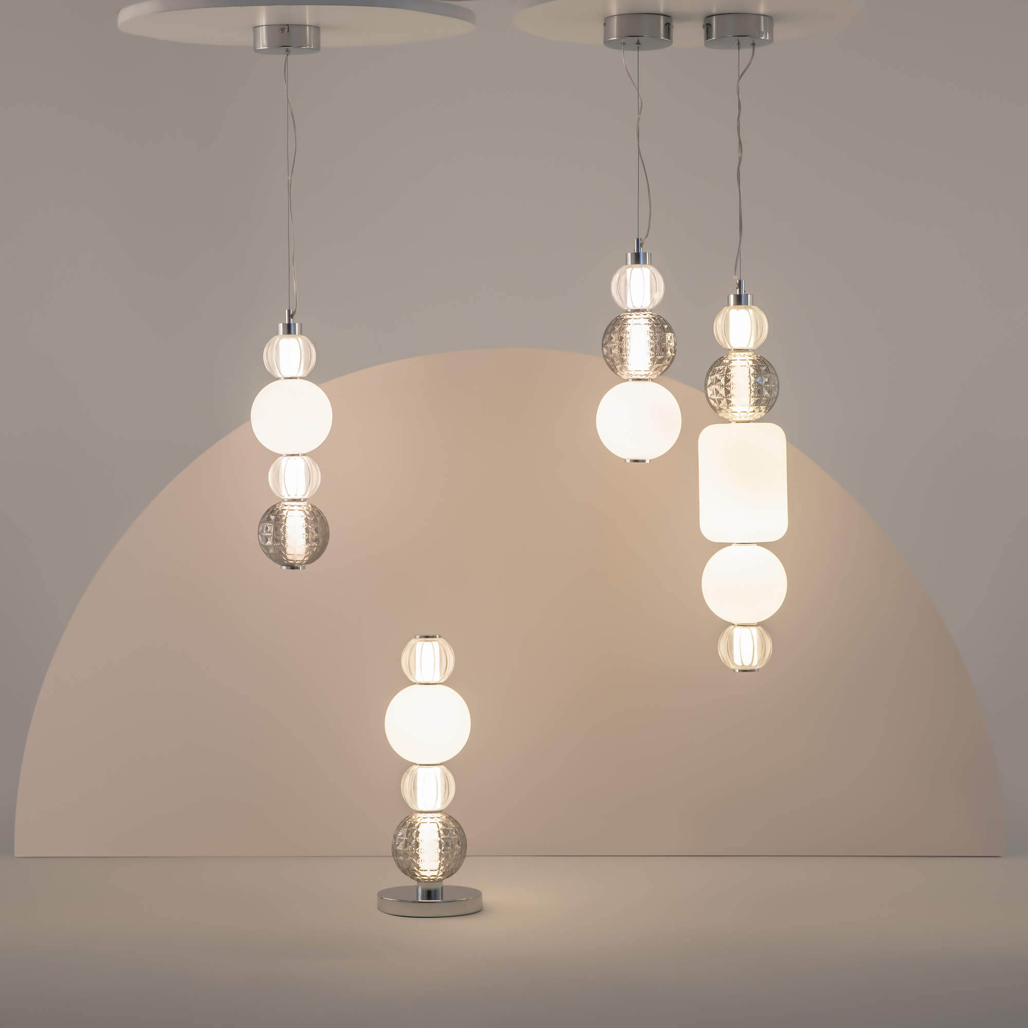 Серия Collar — выбор настоящих ценителей эксклюзивного дизайна. Подвесные светильники выполнены в виде нанизанных на трос элементов из выдувного стекла 3-х видов: прозрачное стекло с вертикальным рисунком, матовое и тонированное стекло с геометрическим рисунком. Высота светильников серии регулируется длиной троса. Сочетая в помещении несколько моделей Collar разного размера, можно создавать необычные и стильные композиции, превращая интерьер дома в настоящий арт-объект.